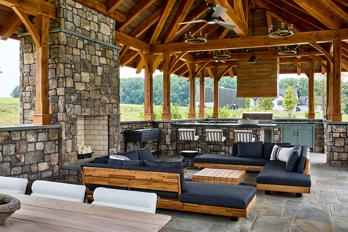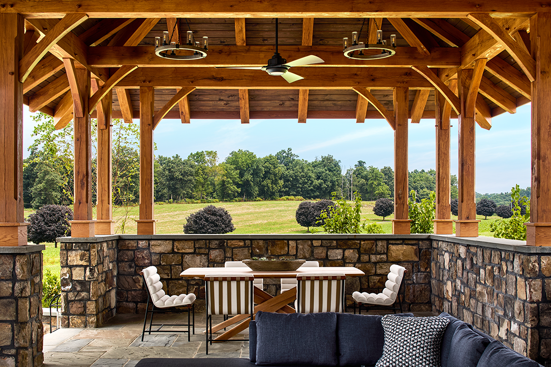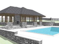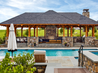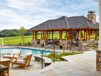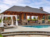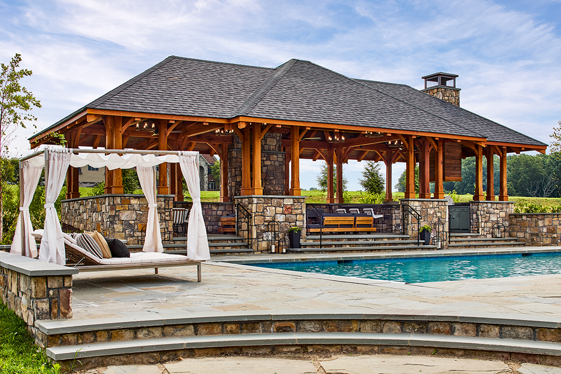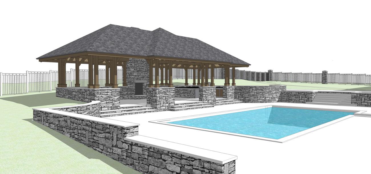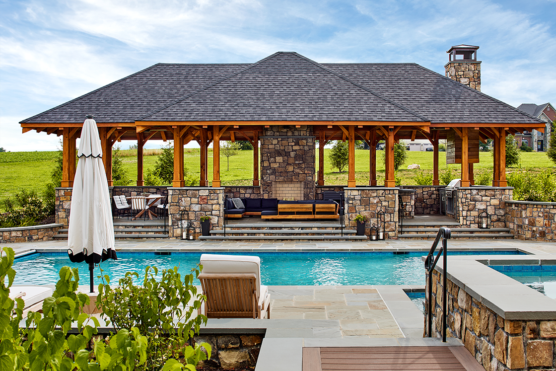 - Private courtyard with pool, hot tub, pavilion, and fire pit