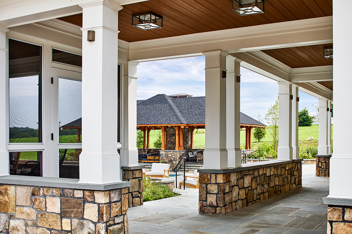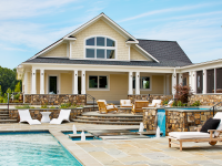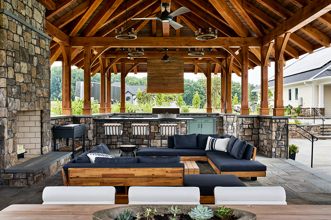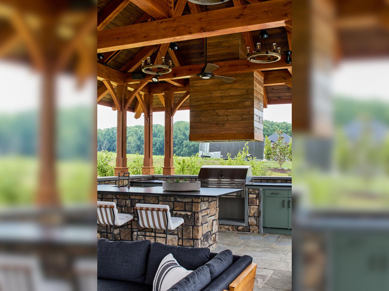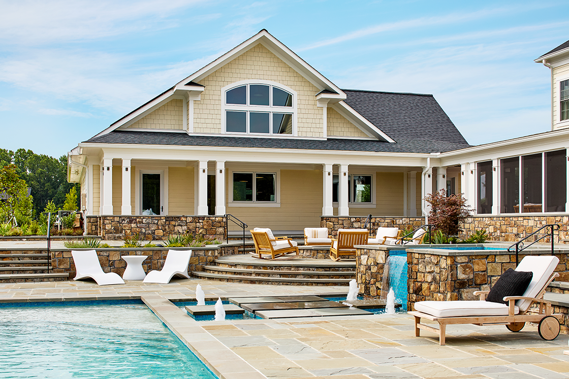 - Private courtyard with pool, hot tub, pavilion, and fire pit